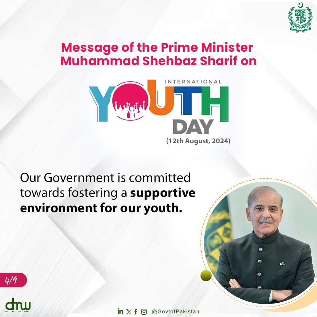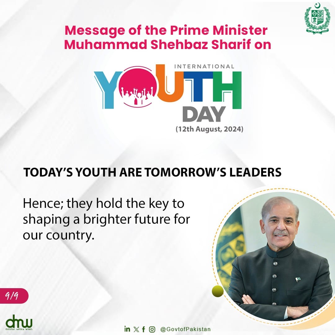 Message of the Prime Minister Muhammad Shehbaz Sharif on Youth Day