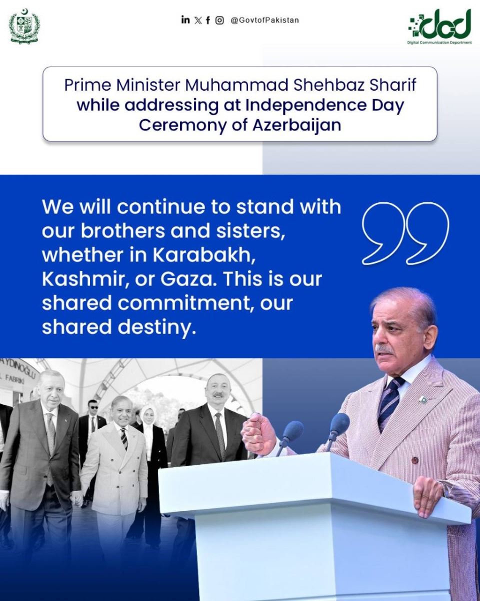 ~Prime Minister Muhammad Shehbaz Sharif while addressing at Independence Day Ceremony of Azerbaijan