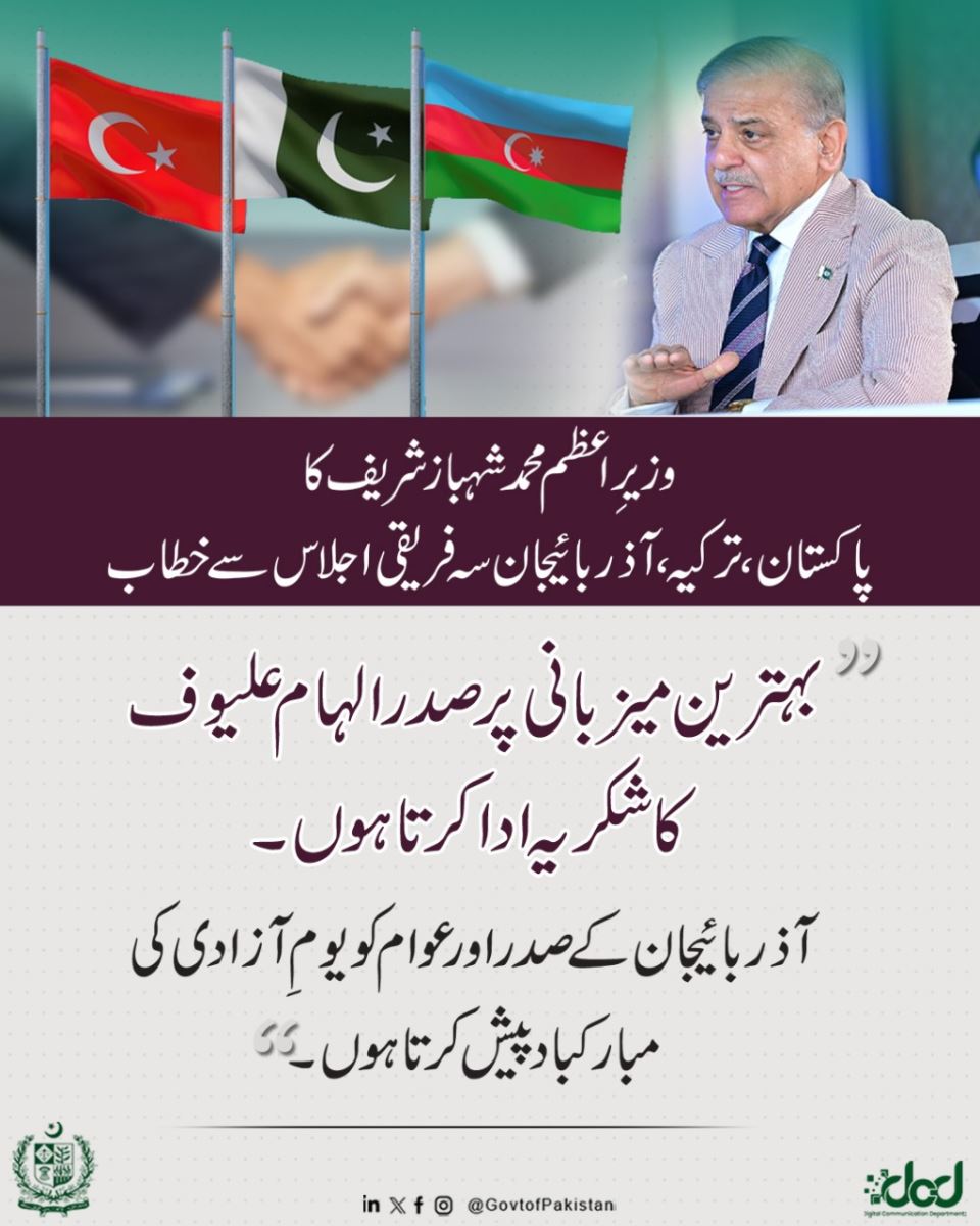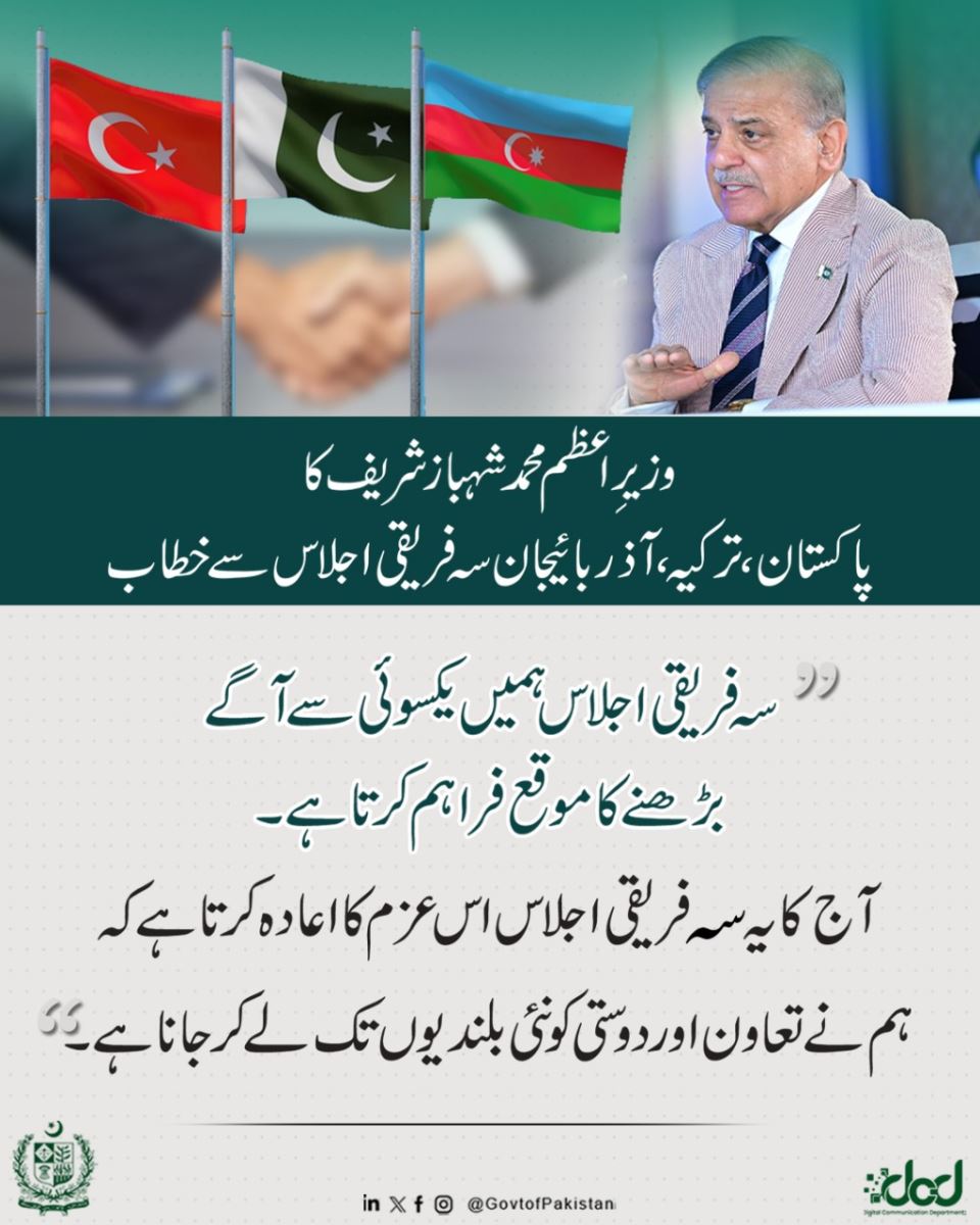 Prime Minister Muhammad Shehbaz Sharif's address at the Pakistan, Turkey, Azerbaijan trilateral meeting.
