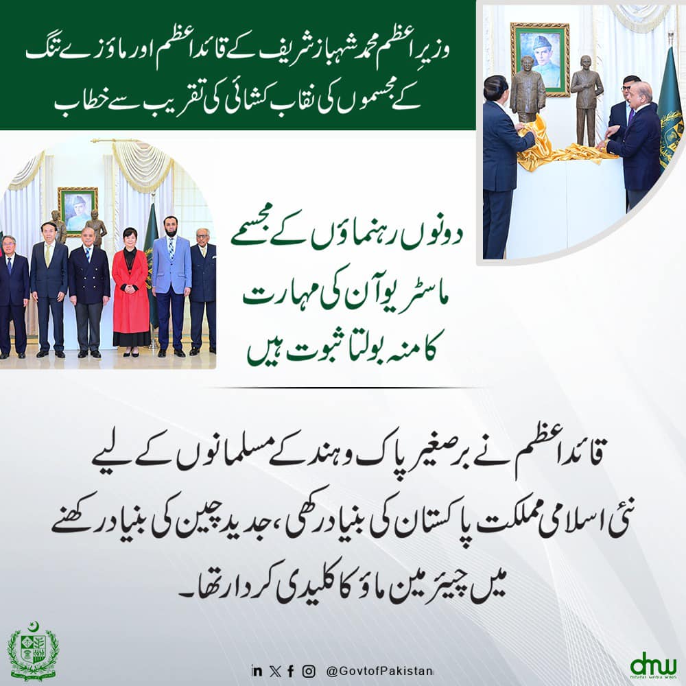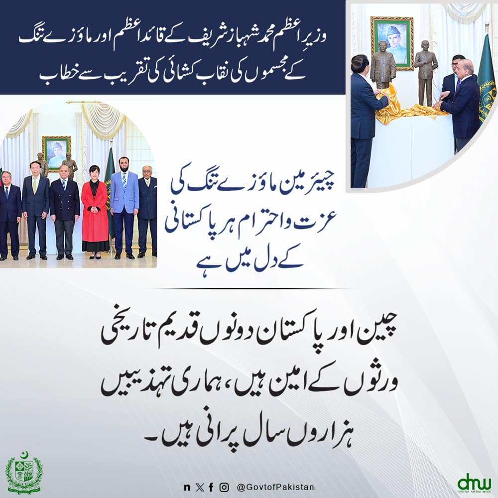 Prime Minister Muhammad Shehbaz Sharif's speech at the unveiling ceremony of statues of Quaid-e-Azam and Mao Zedong by Chinese artist and sculptor Master Yuan Shikham