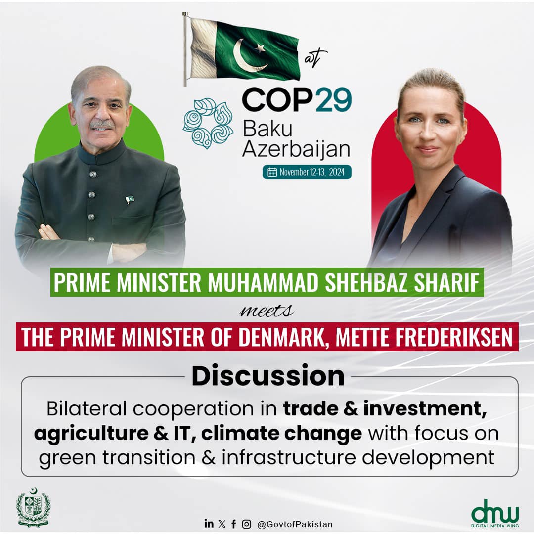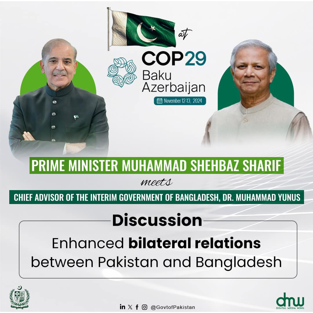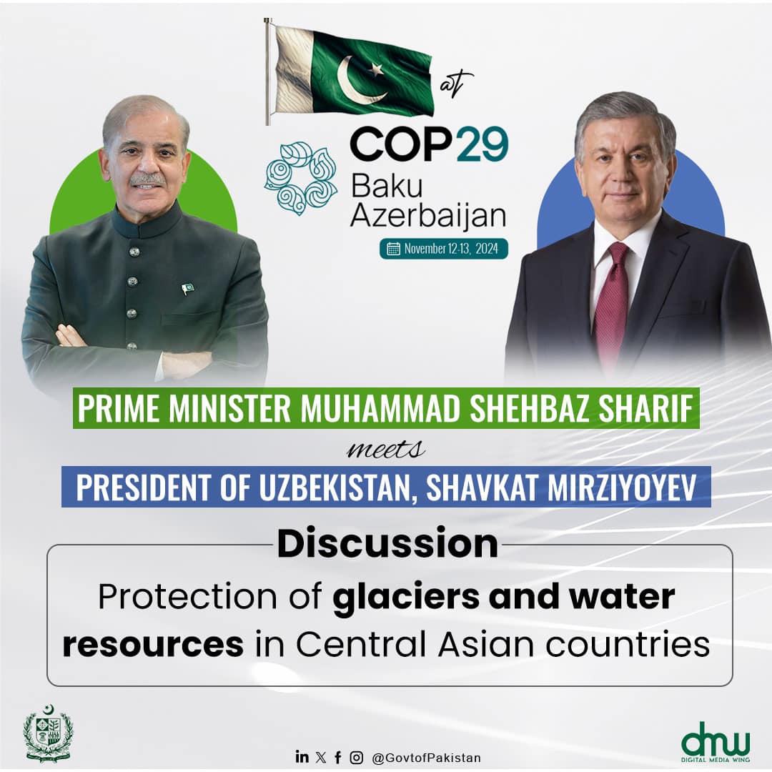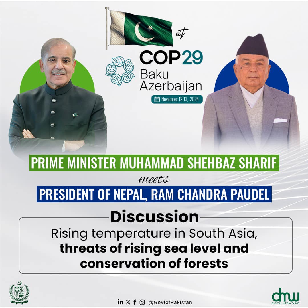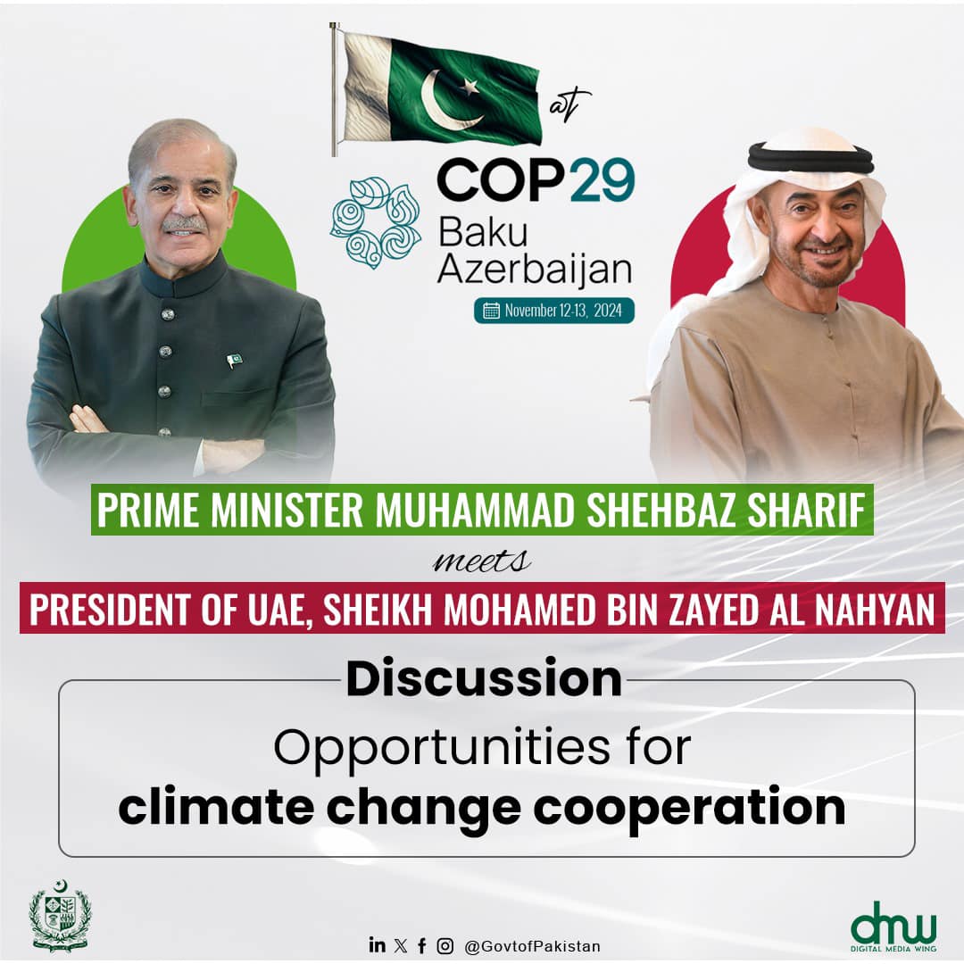 Prime Minister Muhammad Shehbaz Sharif meets world leaders on the sidelines of #COP29 Climate Action Summit in Baku.